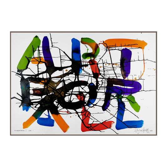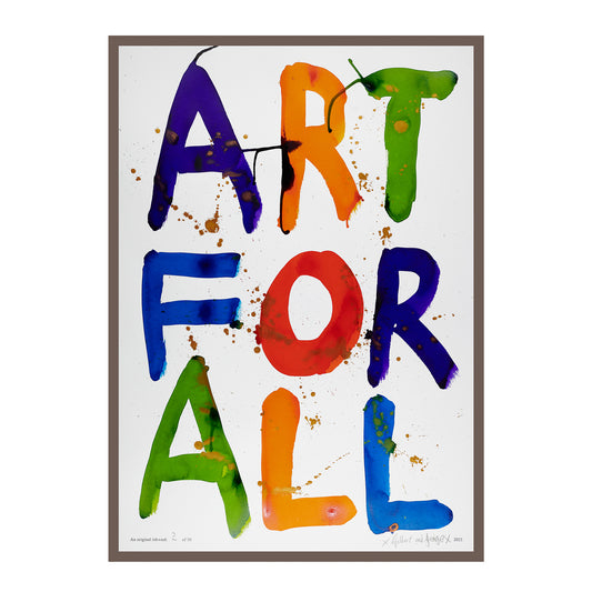 Created during the opening year of the Centre, each 'ART FOR ALL' Inkwash is individually hand-painted by Gilbert & George meaning each one has its own unique, vibrant characteristics such as heavy brush strokes, ink splatters and gold drips.