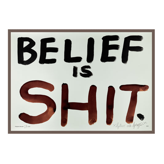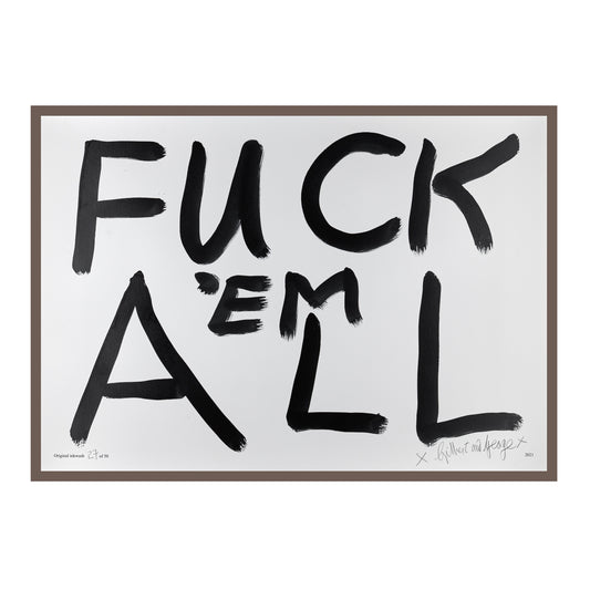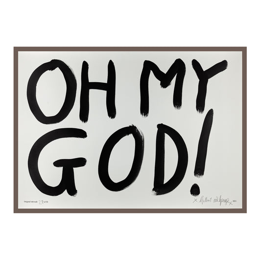 Created by Gilbert & George in 2021, this suite of 12 Inkwashes features rich, heavy brush strokes depicting blunt and direct exclamations, so often overheard by Gilbert & George in streets, restaurants or whilst travelling.