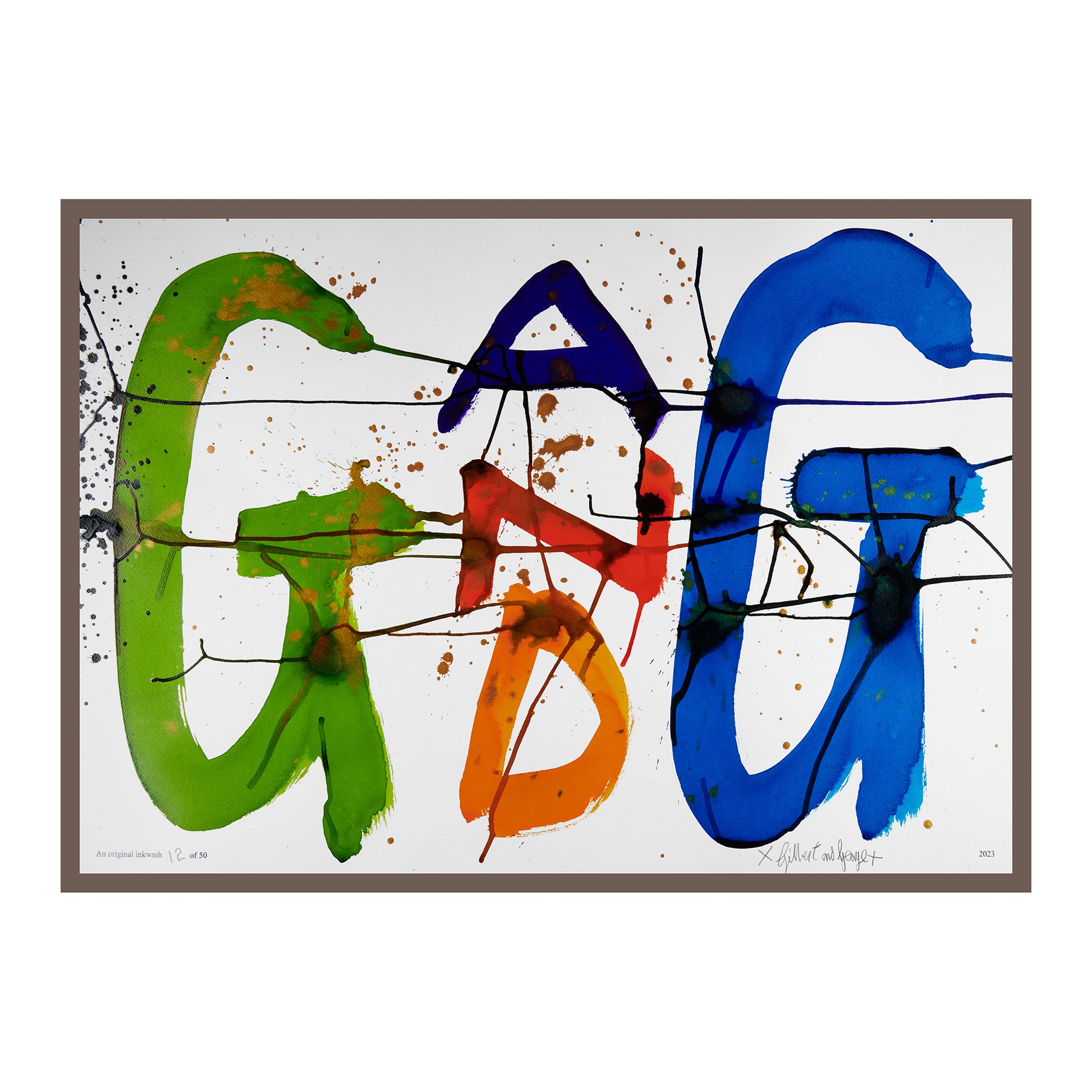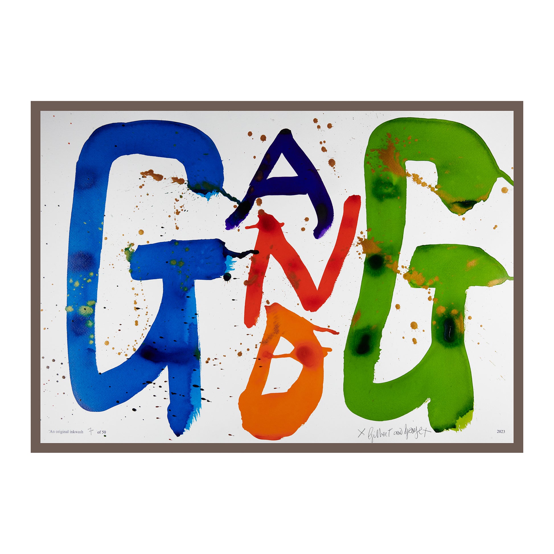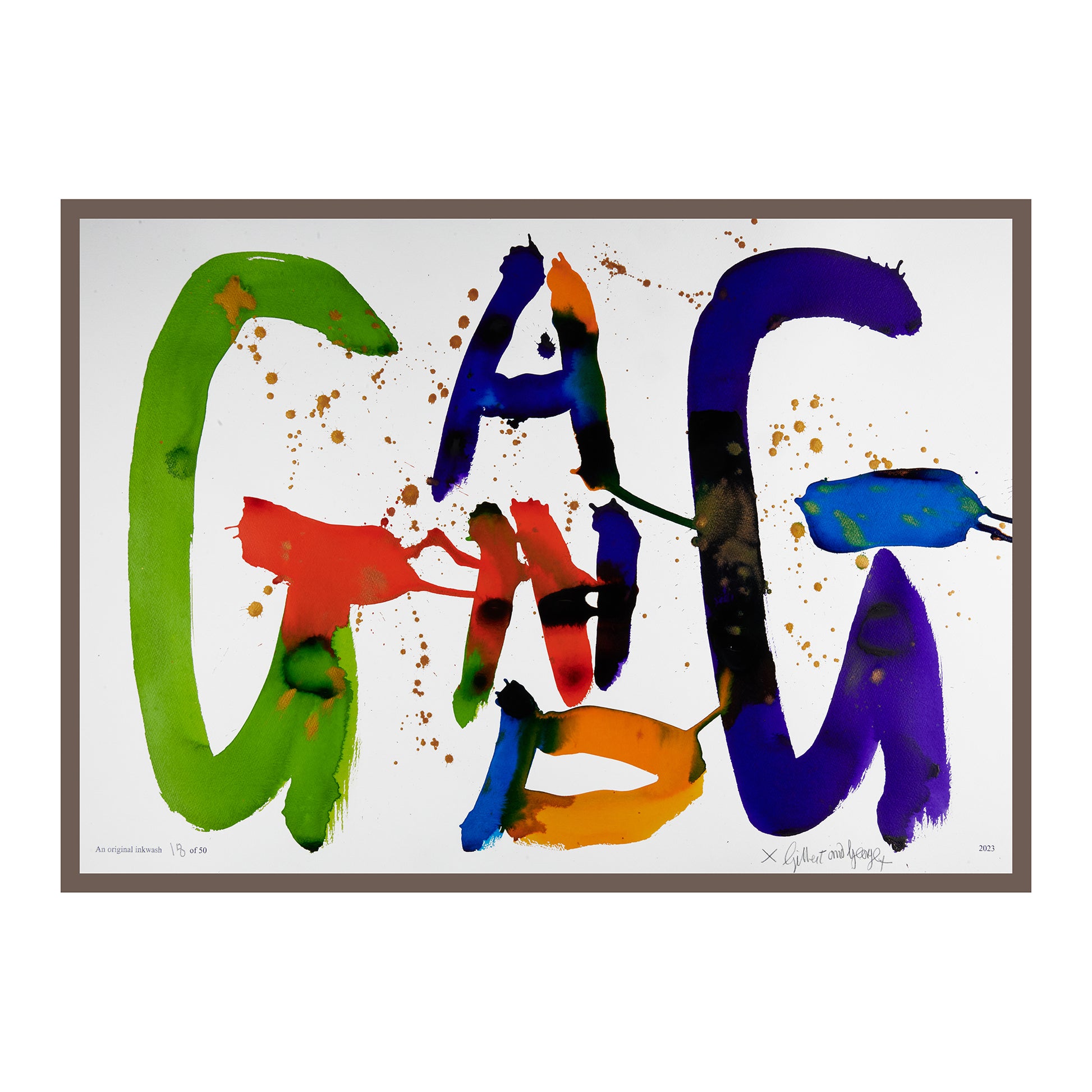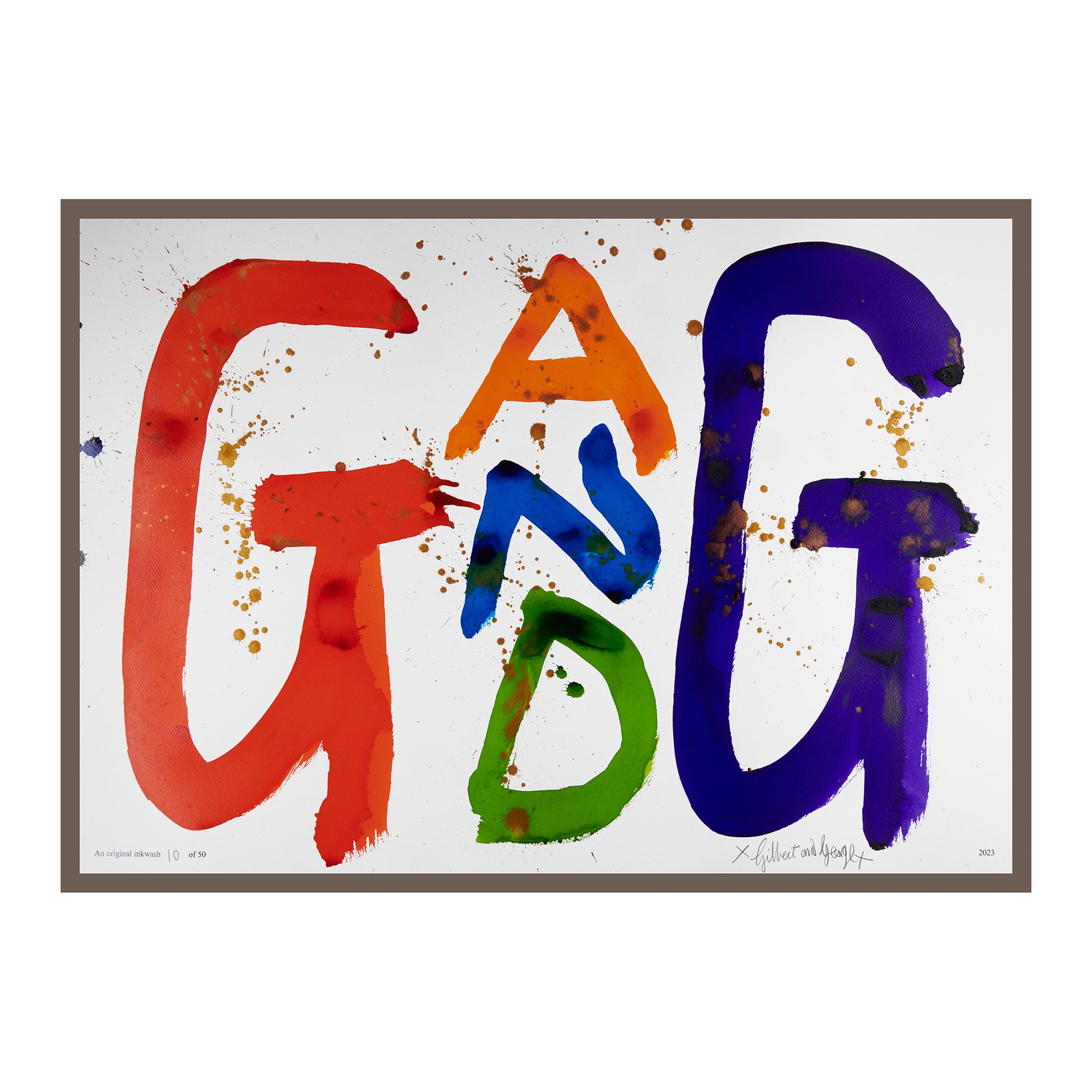 Inkwash individually created and hand-painted by Gilbert & George, numbered and signed on 400 gsm watercolour paper. Sold unframed.