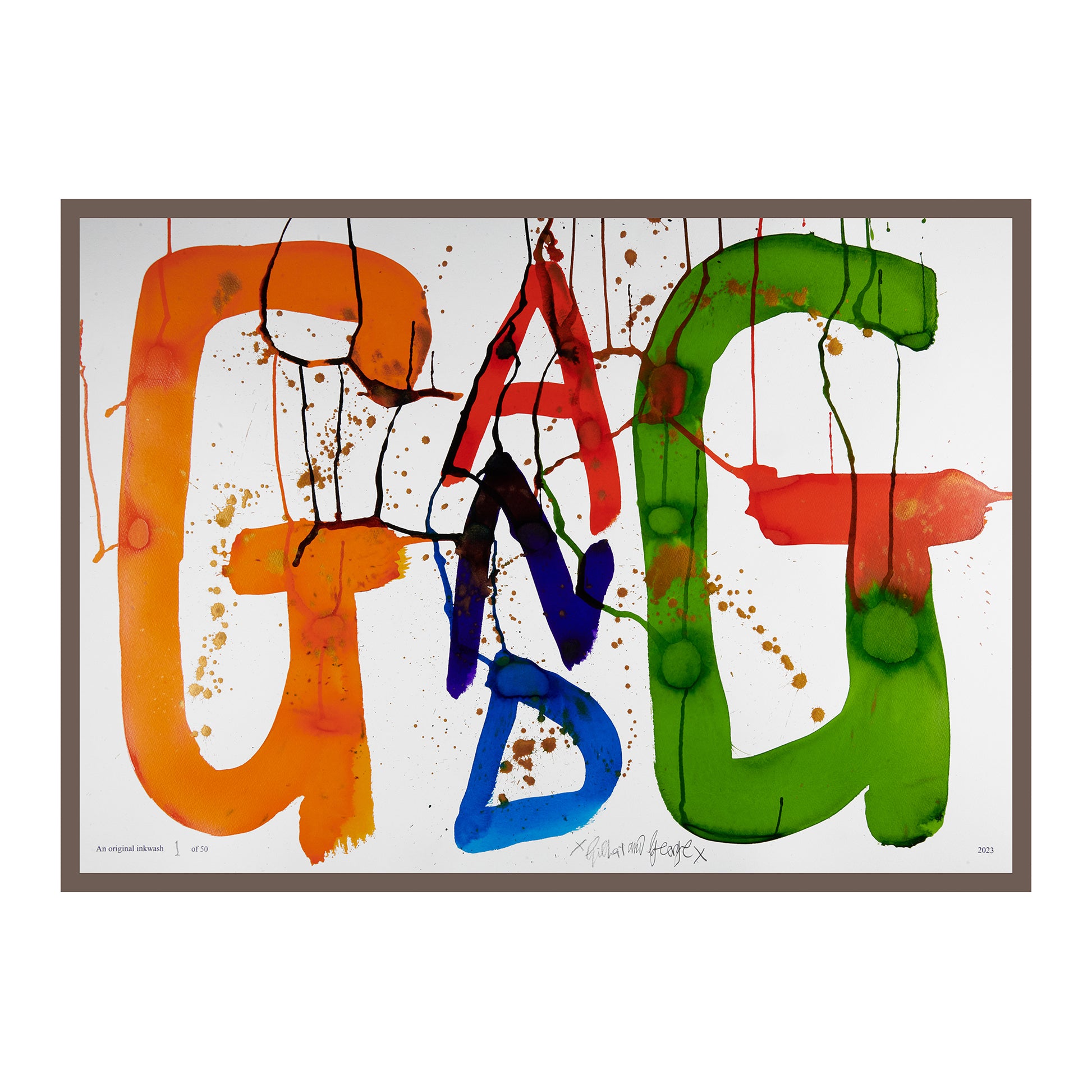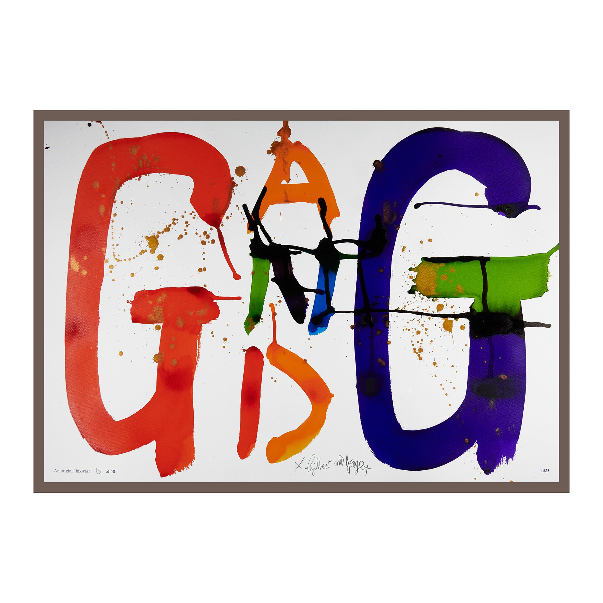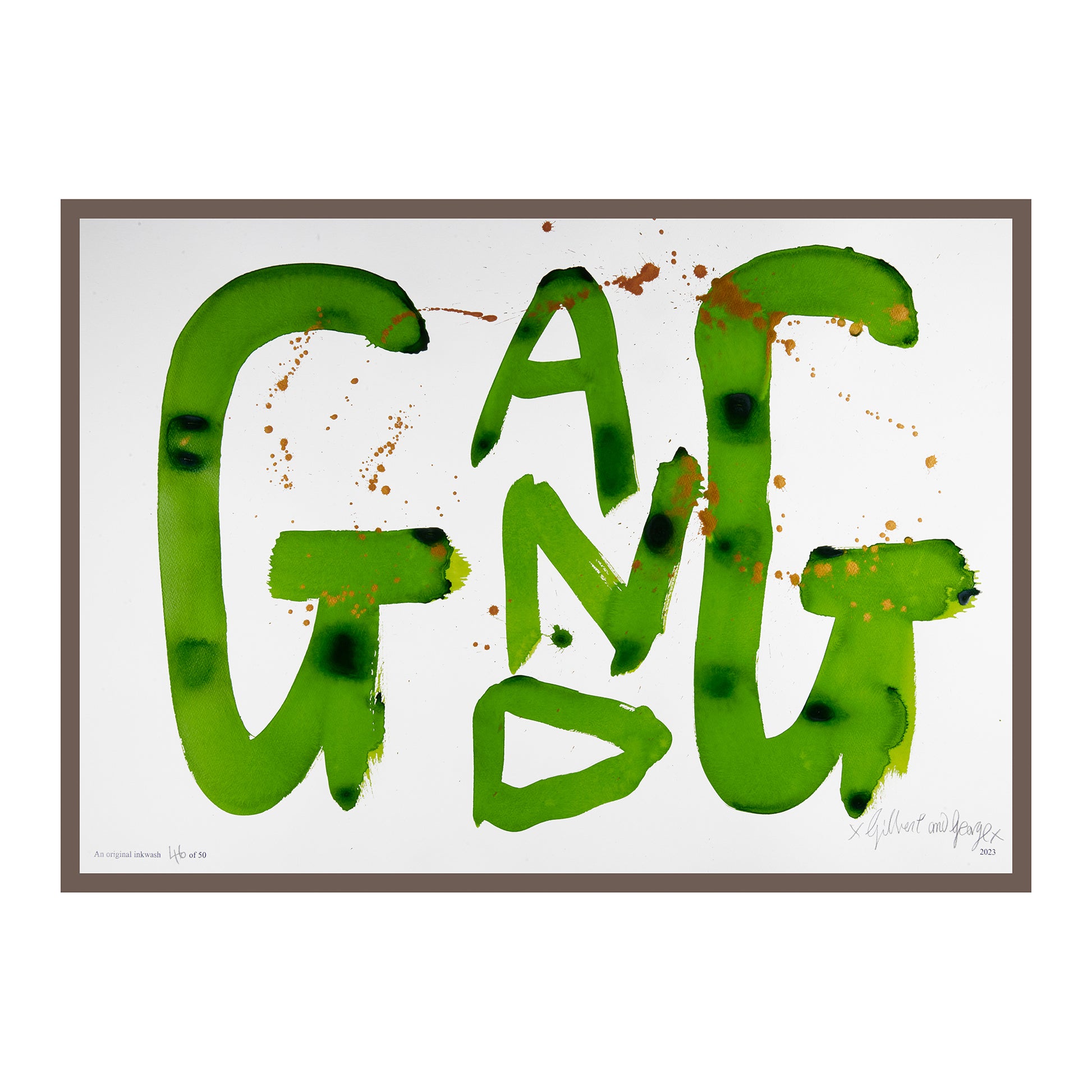Inkwash individually created and hand-painted by Gilbert & George, numbered and signed on 400 gsm watercolour paper. Sold unframed.