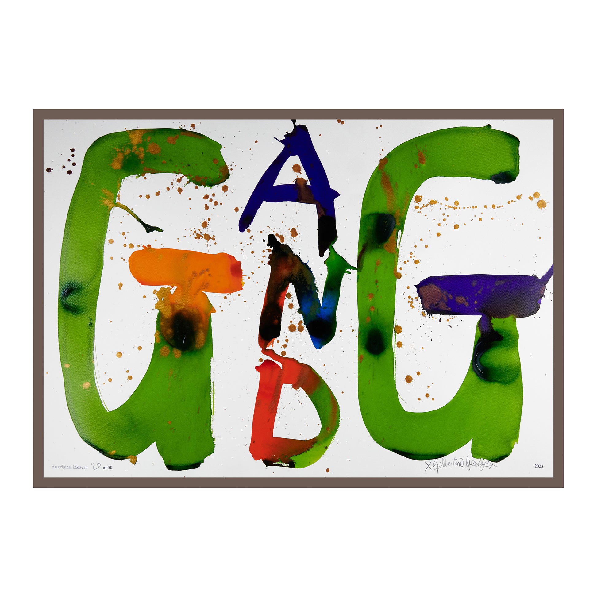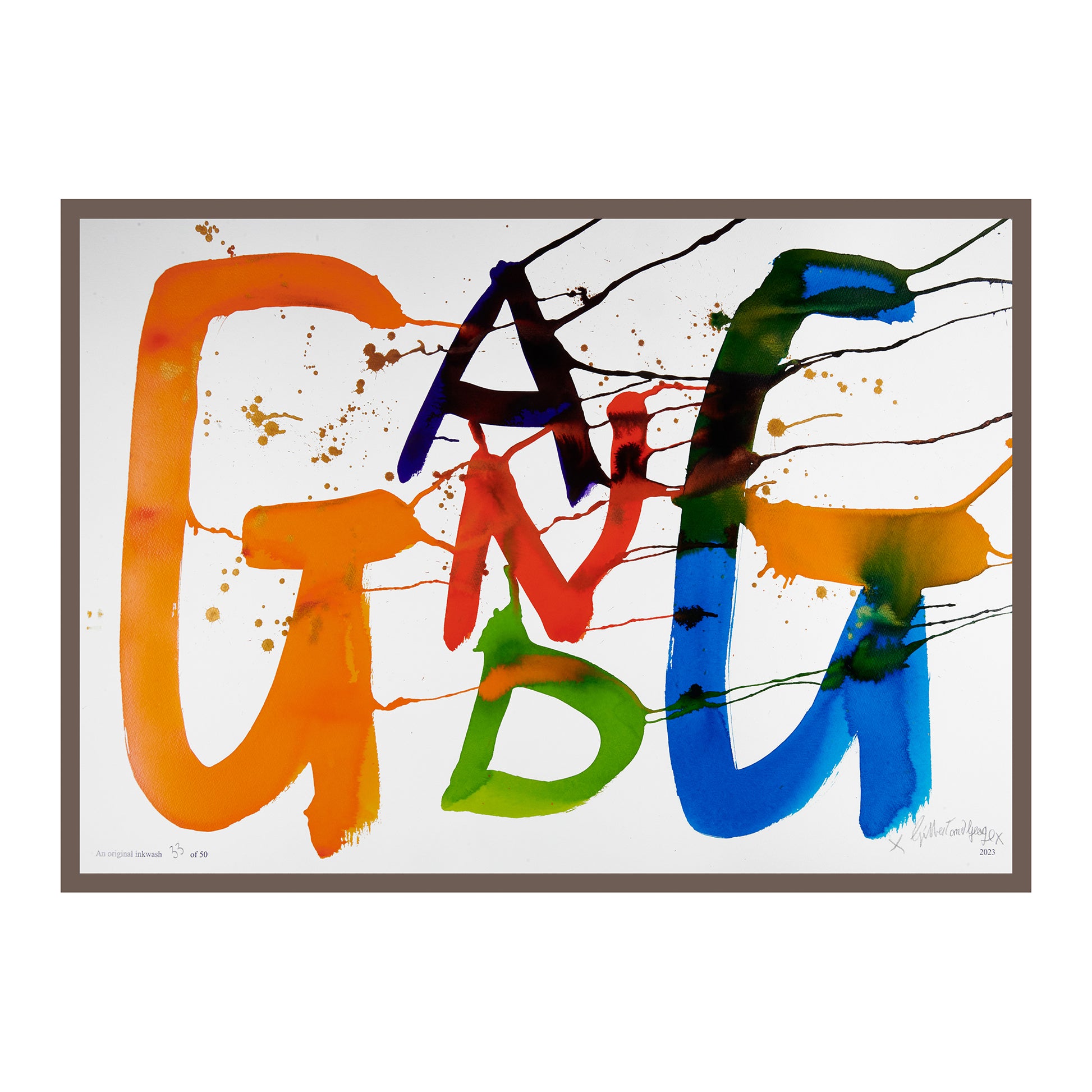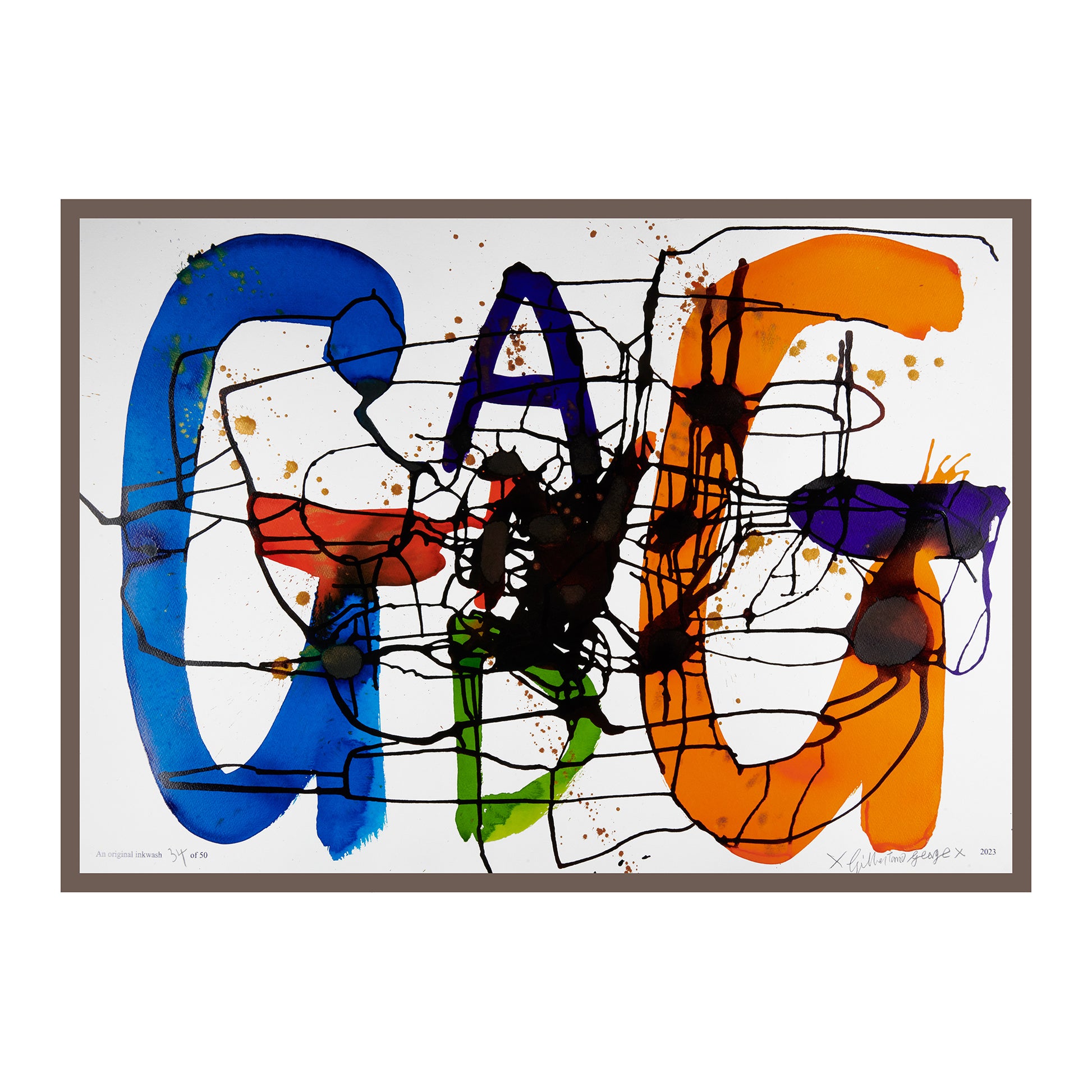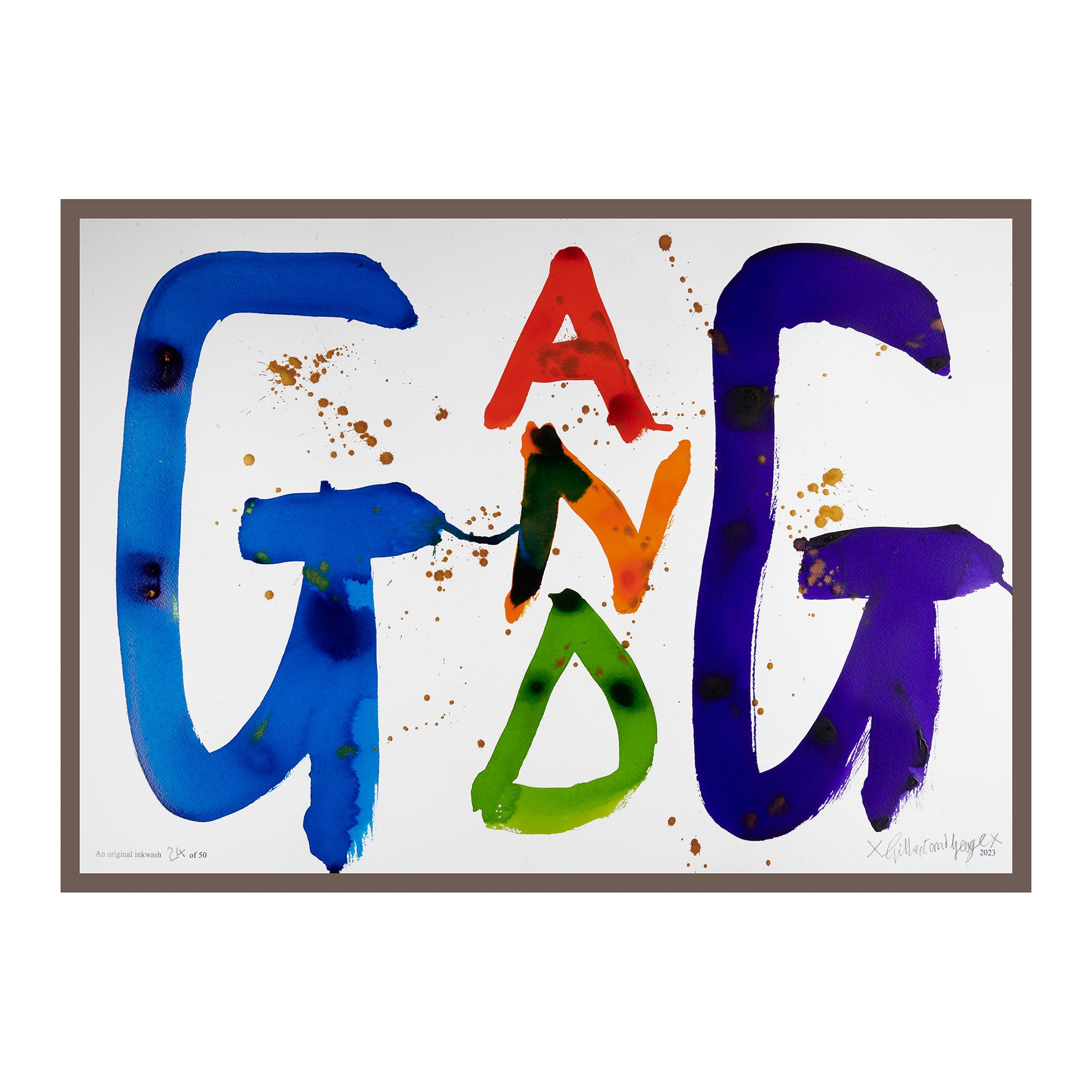 Inkwash individually created and hand-painted by Gilbert & George, numbered and signed on 400 gsm watercolour paper. Sold unframed.